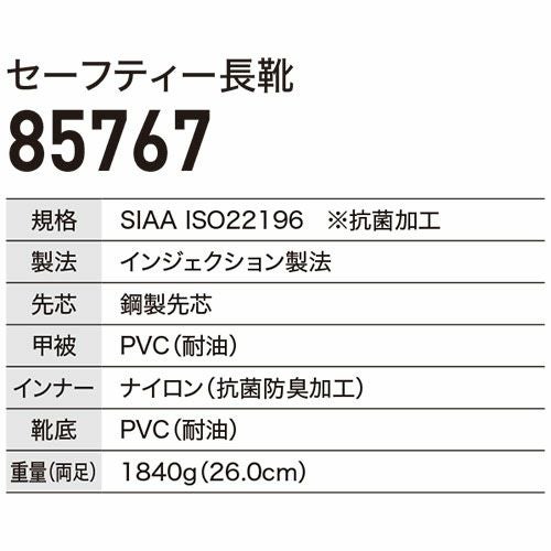 他の画像を見る 安全長靴 ジーベック XEBEC PVCセーフティー長靴 85767 レインブーツ 抗菌 防臭 男女兼用 軽量 先芯入り長靴 ゴム長靴 特別価格 ¥ 3,623 税込 多機能PVC長靴 先芯搭載モデル ●水や油で滑りにくいソール●胴体部分はSIAA抗菌加工で衛生的●全体が耐油配合で幅広い職種に対応 詳細を見る お気に入りに登録する