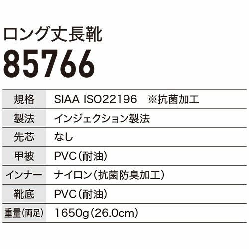 他の画像を見る 長靴 ジーベック XEBEC PVCロング丈長靴ロング 85766 レインブーツ 抗菌 防臭 男女兼用 軽量 先芯なし長靴 ゴム長靴 特別価格 ¥ 3,461 税込 多機能PVC長靴 先芯なしモデル ●水や油で滑りにくいソール●胴体部分はSIAA抗菌加工で衛生的●全体が耐油配合で幅広い職種に対応 詳細を見る お気に入りに登録する