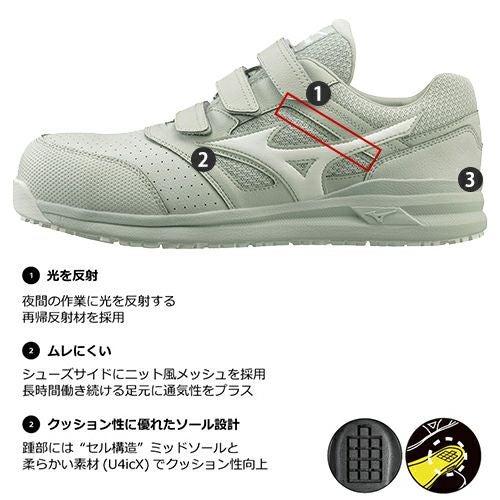 他の画像を見る 安全靴 ミズノ ブーツ メンズ MIZUNO オールマイティ BS29H 2023年 新作 新商品 作業靴 半長靴 マジックテープ ブーツタイプ 人工皮革 樹脂先芯 衝撃吸収 耐滑 軽量 再帰反射材 安全ブーツ JSAA規格 おしゃれ 人気 蒸れにくい 滑りにくい かっこいい 建設 倉庫業 22.5~29.0cm 特別価格 ¥ 14,300 税込 この軽さ想定外! 素材や形状を多方面から見直し軽量設計を実現したソール 詳細を見る お気に入りに登録する