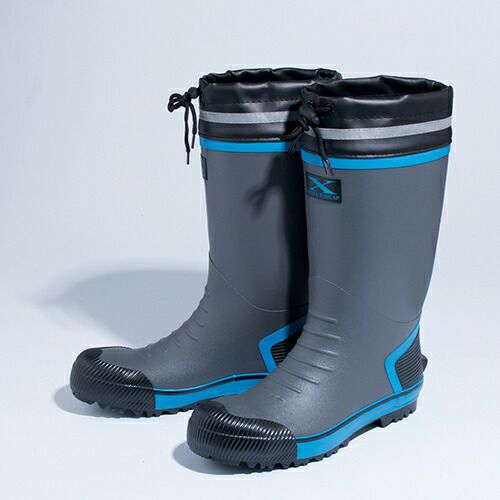 配色でのデザインを施した鋼鉄先芯入りセーフティ長靴。裏地には吸汗ドライ生地を採用し、靴内のムレを軽減し、快適に作業できます。