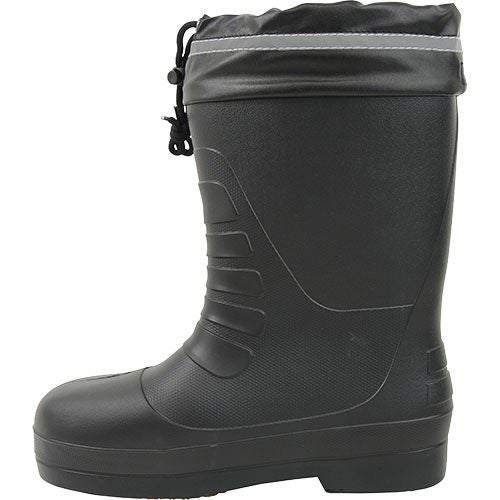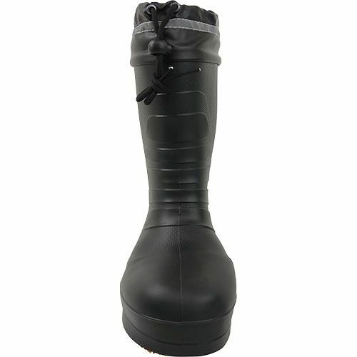 先芯なしのライト仕様。胴太設計の防寒長靴 イエローラインがアクセントになっている先芯なしタイプの防寒長靴。胴太設計で、厚みのある防寒ウェアに対応。ソールは滑りにくく深い刻みを入れたゴム底仕様です。