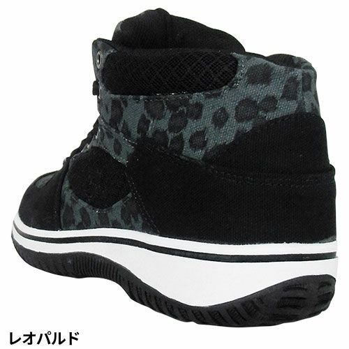 白金ナノ加工された制菌・消臭インソールの生地が菌を撃退!清潔を保ち、消臭効果で足の悪臭消臭 長時間履いても臭いにくい 足首にフィットするやわらかクッションで足入れが気持ちいい!曲がる曲がる屈曲性抜群な靴底レオパルド(豹柄)のみ、23.0~28.0でサイズ展開していますペイズリー(ホワイト)のソールは、マーキング跡がつきにくい白色底を採用しています!迷彩(カモフラ)柄や動物(アニマル)柄を採用し、安全スニーカーに見えないおしゃれなデザイン