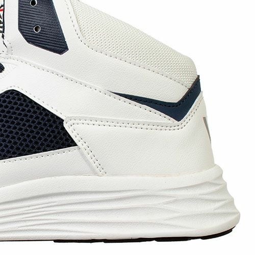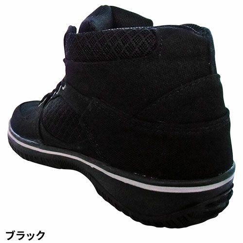 軽量ミッドカット樹脂先芯入りセーフティスニーカー アクティブに動けるスポーティデザインセーフティつま先部の耐衝撃性能・耐圧迫性能 JIS T8101(L種)性能相当足の負担軽減!ハイクッションソール(40mm)・通気性に優れたヒールカップインソール・多数の通気穴により蒸れを軽減・ヒールカップ形状がカカトのブレを防ぎ歩行の安定感を向上