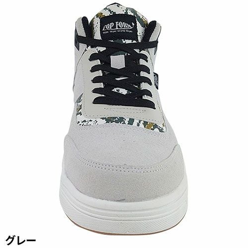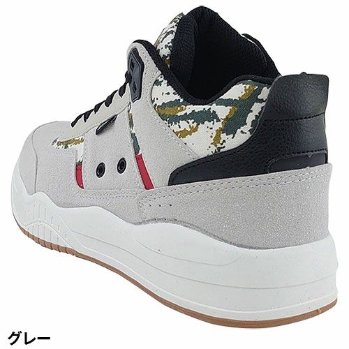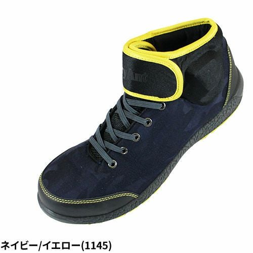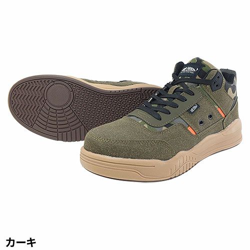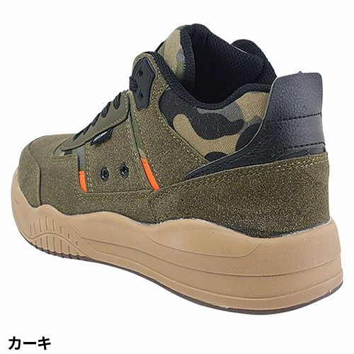 心地よいフィット感。デザイン性と履き心地を両立 ・心地よいフィット感と適度な弾力で衝撃を軽減するクッションソールを搭載したセーフティースニーカーです。・両側面に空気穴を配置することでムレを軽減します。・アッパーは迷彩柄とスエード調のデザインです。・クッション性に優れたEVAミッドソール採用しています。・白金ナノ加工された制菌・消臭インソールの生地が菌を撃退!清潔を保ち、消臭効果で足の悪臭消臭 長時間履いても臭いにくいです。・アウトソールは前面ラバーで地面をしっかりグリップします。・カカト部分には、視認性の高い反射材採用で夜間作業の安全を確保します。