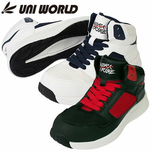 安全靴 ハイカット ユニワールド WOERK TRIBE セーフティスニーカー WT-1000、WT-1010 紐靴 先芯あり 軽量 耐衝撃 耐圧迫 通気 ミッドカット スポーティ