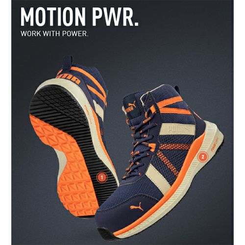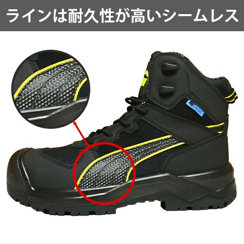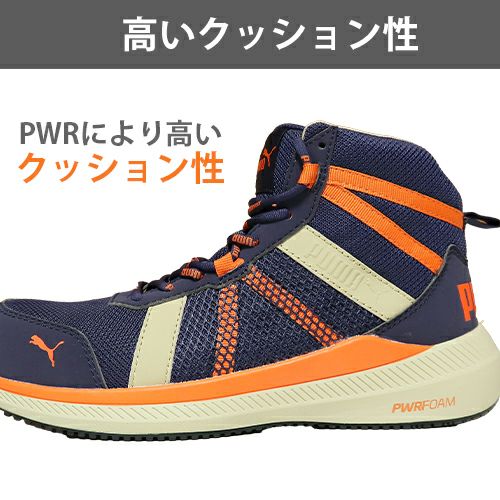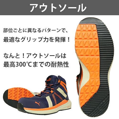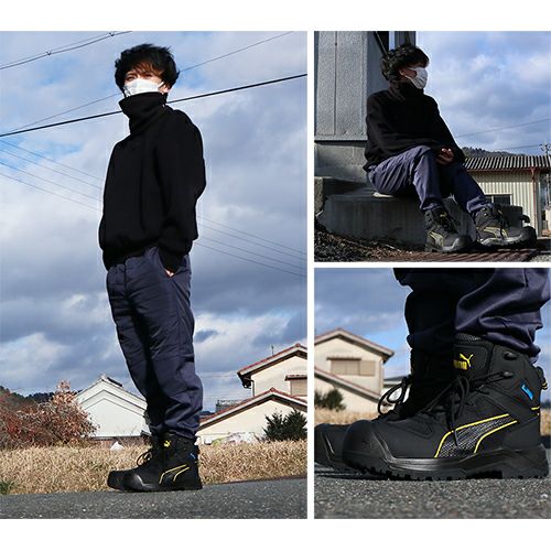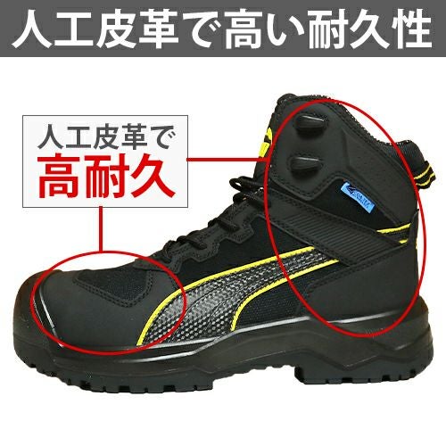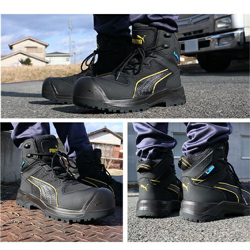 大人気のヘリテイジシリーズからミッドカットが登場! 待ちに待った「ザ・プーマ」なデザインのハイカット安全靴!静電気帯電防止で静電気を靴底から逃します。