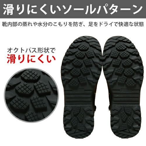 5cm防水セーフティスニーカー登場!!ワークに農作業に園芸にキャンプにバイクに雪国にくるぶしが隠れるミドルカットタイプ。足首部分のエラスチック生地のホールド感。足首からのゴミや異物の進入も防ぎます。インジェクションソール採用でソール剥がれの問題なし。驚くほどの柔軟性と屈曲性を実現しました。