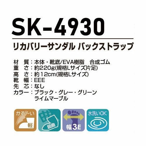 他の画像を見る サンダル 喜多 リカバリーサンダル(バックストラップ付) EVAラバー SK4930 メンズ レディース 軽量 疲労軽減 リカバリーシューズ コンフォート サンダル スリッポン サボ つっかけ 疲労軽減 水洗いOK EVA アウトドア スポーツ キャンプ 海水浴 ビーチ プール 屋外 室外 オフィス 会社 学校 特別価格 ¥ 2,080 税込 快適は足元からバックストラップでフィット!疲れた足をリラックス ・特殊ブレンドした発砲樹脂で今までにない柔らかさを実現したバックストラップ付のリカバリーサンダルです。・バックストラップはマジックテープ付で、足に合わせて簡単に調節することができます。・アッパーに通気孔を設けることで、長時間の着用でもムレにくく、蒸し暑い季節や作業環境でも、爽やかな履き心地をキープします。・屈曲性を兼ね備えた弾力のあるEVAラバー素材で疲れた足をリラックス。・特殊専用ソール「SQUISHY foam(スクイーシーフォーム)」は疲れた足裏を優しく包み込み、衝撃を吸収し負担を軽減します。・足裏に合わせたアーチがかかと部分に集中する衝撃を分散し、疲労軽減します。・水洗いOK 詳細を見る お気に入りに登録する