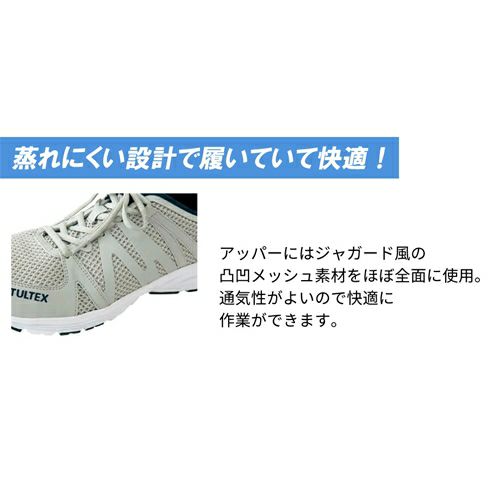 他の画像を見る 安全靴 AITOZ アイトス TULTEX タルテックス セーフティシューズ AZ-51649 紐靴 作業靴 スニーカー ローカット メンズ レディース 男女兼用 おしゃれ かっこいい 先芯あり 樹脂先芯 軽量 通気性 クッション性 特別価格 ¥ 3,316 税込 超軽量 軽作業向け JIS L級相当の樹脂先芯で超軽量ジャガード風の凸凹メッシュ素材による通気性26.0cm片足約270g、軽作業向けスポーツテイストなカラーリング 詳細を見る お気に入りに登録する
