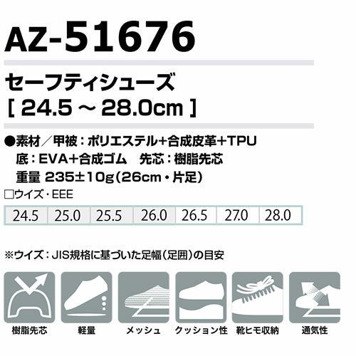 他の画像を見る セーフティシューズ 安全靴 AZ-51674 AITOZ アイトス タルテックス TULTEX 軽量 軽い 先芯あり 疲れにくい 作業靴 スニーカー ローカット メンズ 男性用 ストリート カジュアル かっこいい おしゃれ 倉庫 仕事 樹脂先芯 メッシュ クッション性 特別価格 ¥ 3,792 税込 高反発EVAクッション搭載の軽量モデル、人気のスポーツテイストデザイン 約295gの軽量設計、樹脂先芯モデル。クッション性の高いEVAミッドソールとナイロンメッシュのアッパーで快適な履き心地と疲れにくさを実現しました。運送、物流から組み立て加工など軽作業用途に最適です。 詳細を見る お気に入りに登録する