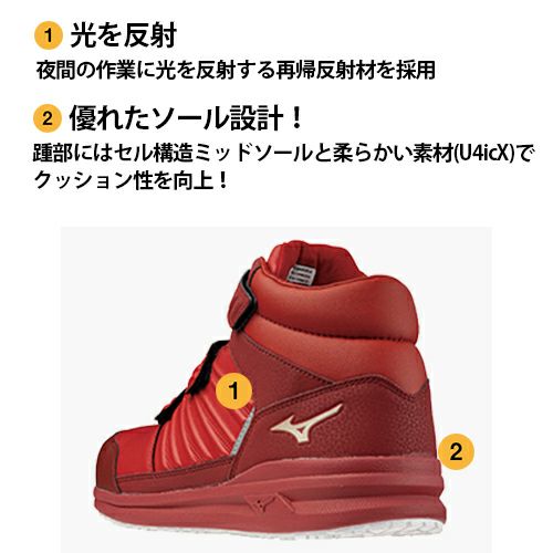 他の画像を見る 安全靴 ミズノ ブーツ メンズ MIZUNO オールマイティ BS29H 2023年 新作 新商品 作業靴 半長靴 マジックテープ ブーツタイプ 人工皮革 樹脂先芯 衝撃吸収 耐滑 軽量 再帰反射材 安全ブーツ JSAA規格 おしゃれ 人気 蒸れにくい 滑りにくい かっこいい 建設 倉庫業 22.5~29.0cm 特別価格 ¥ 14,300 税込 この軽さ想定外! 素材や形状を多方面から見直し軽量設計を実現したソール 詳細を見る お気に入りに登録する
