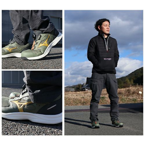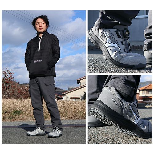 他の画像を見る ミズノ 安全靴 boa ダイヤル式 MIZUNO オールマイティ 新作 MIZUNO ALMIGHTY LS2 52L BOA JSAA規格 2025年 限定 メンズ レディース 軽量 樹脂先芯 おしゃれ かっこいい ホログラム スニーカー 滑りにくい 建築 建設 耐滑 耐油 3E 倉庫業 運送業 運輸業 22.0~29.0cm 特別価格 ¥ 16,280 税込 〜 特別価格 ¥ 税込 「快」機能満載の履き心地! ワークシューズに求められる高機能を惜しまず投入。BOAによる優れたホールド感に加えて、この軽さ。さらに高いクッション性と通気性も備えた贅沢な快適シューズ。ぜひ履いて試してほしい。BOA搭載なのに、この軽さ。フィット感の調節と着脱が簡単な上に、ニット風メッシュのアッパーとクッション性と高めたソール設計。足がムレにくく柔らかな履き心地を実現します。 詳細を見る お気に入りに登録する