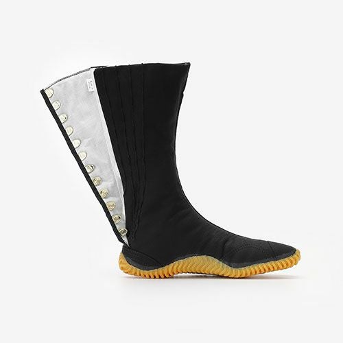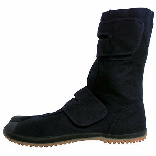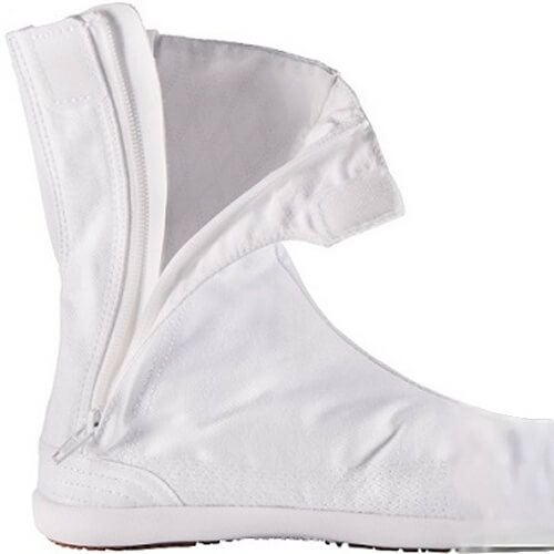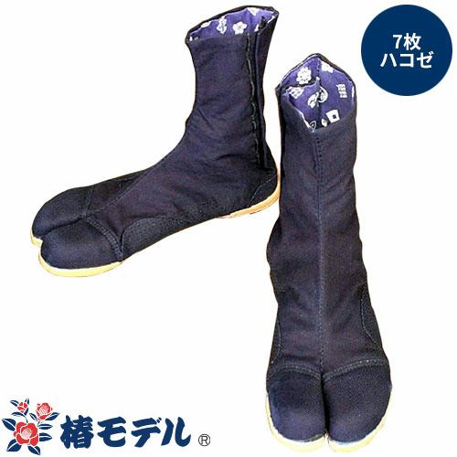 足袋の長さはふくらはぎの少し下らへんまで到達する物もあります。足袋の長さは鞐(こはぜ)の枚数で決まります。最も少ない鞐の枚数は3枚程度。スニーカーのような外観です。最も長いハゼの枚数は15枚程度で、ふくらはぎまで隠れる長さです。はぜの枚数が15枚にもなると、脚絆としての役割も兼ねていることが多いと言えます。脚絆の役割は、スネの保護と障害物に引っ掛りにくくするものです。さらにふくらはぎを締め付けることによって、うっ血の防止ができます。それによりふくらはぎの疲れを軽減できると言われています。古くは江戸時代の郵便配達飛脚や、昔のタクシーとも言える籠屋など、一日に多くの距離を歩く職業の方が愛用していました。