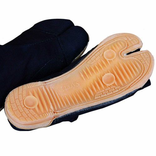 作業用足袋は、鳶、大工、鉄筋屋だけでなく、登山やお祭りなど幅広く愛用されています。地下足袋のメリットは、軽くて足裏の感覚があることです。最近ではつま先に鉄板が入った、安全靴仕様の安全足袋が主流です。また、長時間の作業でも疲れにくい、エアージョグやエアクッション入りのエアー足袋も販売されています。