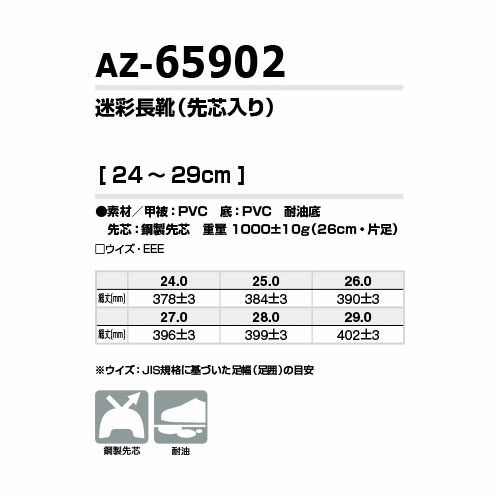 長靴 安全靴 作業靴 AITOZ アイトス 迷彩長靴(先芯入り) AZ-65902 レインブーツ ロングタイプ 先芯あり 鋼製先芯 おしゃれ かっこいい 耐油