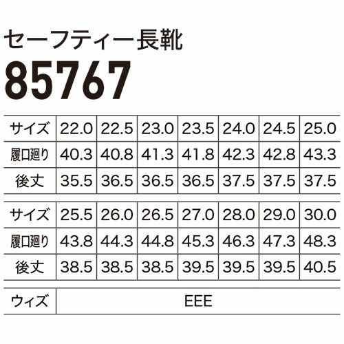 解体や瓦礎撤去作業に釘などの踏貫きを防止する鋼板入り靴底 ・屈曲試験100万回クリアの耐久性、耐冷温度約マイナス30度、JIS S種相当の鋼先芯&耐踏貫き防止のセーフティショートブーツです。・100万回の屈曲試験をクリアした耐久性・寒さに強い特性を持つTPEはマイナス30度の環境下でも硬くなりにくい性質があります。・鋼板入りの靴底が解体現場や瓦礫撤去、不整地作業時の釘や鋭利な物に対する踏貫きを防止します。(製法上の理由により、アウトソールから周囲約1cm程度は踏貫き鋼板素材は入っていません)・JIS S種試験に相当する「鋼先芯」、「耐踏貫き性能」(JIS T8101相当試験クリア)・インジェクション製法のため、水漏れしにくい構造が売りの長靴です。・長靴本体側面にはエンボス加工のロゴとシャドー迷彩の柄がデザインされています。・制菌・消臭加工のクッションインソールが嫌な臭い菌を撃退し清潔さを保ちます。・クッション性に優れたハニカム構造のインソール採用で疲れを軽減します。・脱ぎ履きに便利なカカト部にキックバック付