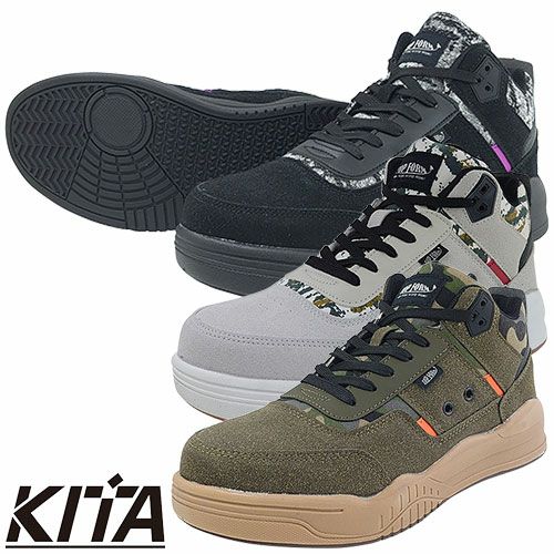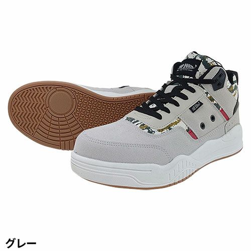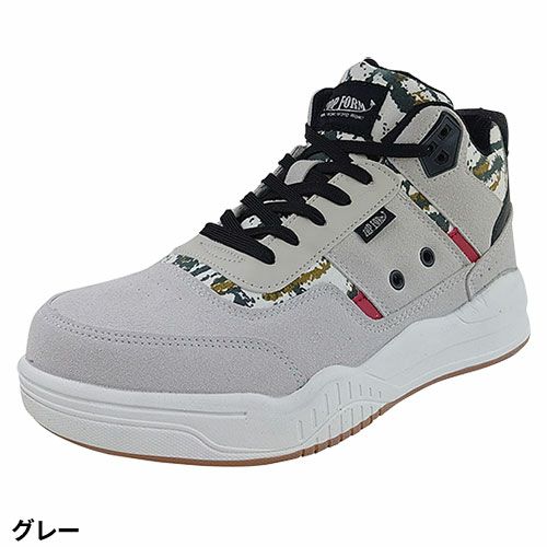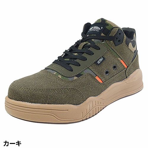 心地よいフィット感。デザイン性と履き心地を両立 ・心地よいフィット感と適度な弾力で衝撃を軽減するクッションソールを搭載したセーフティースニーカーです。・両側面に空気穴を配置することでムレを軽減します。・アッパーは迷彩柄とスエード調のデザインです。・クッション性に優れたEVAミッドソール採用しています。・白金ナノ加工された制菌・消臭インソールの生地が菌を撃退!清潔を保ち、消臭効果で足の悪臭消臭 長時間履いても臭いにくいです。・アウトソールは前面ラバーで地面をしっかりグリップします。・カカト部分には、視認性の高い反射材採用で夜間作業の安全を確保します。