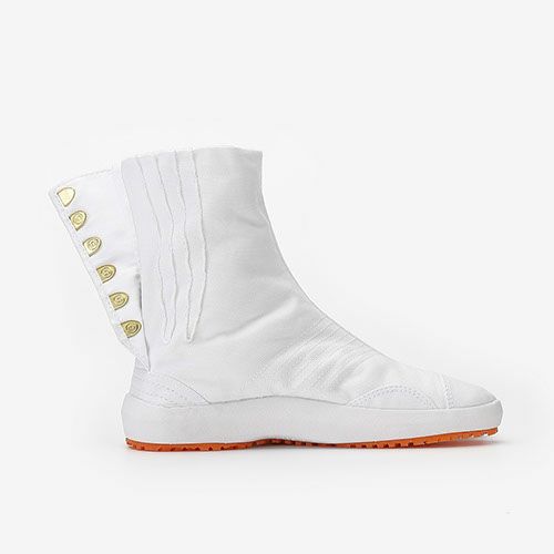 1919年創立の地下足袋メーカー丸五。作業用地下足袋で培った足形に改良を加え、お祭りをより楽しむためのアイテムに仕上げています ミドルカットタイプの足袋型スニーカー。甲の高さに合わせて調整可能な靴ひもタイプ。足当たりがソフトなメッシュ生地を使用。祭りはもちろん、トレーニングでも活躍する1足です。