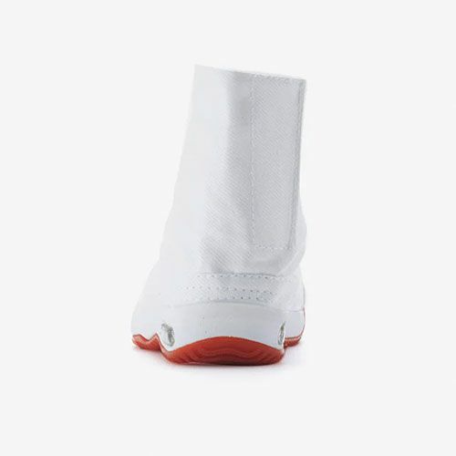 かかとを踏める早履きタイプ。スリッポン型セーフティシューズ かかと踏み可能なスリッポン型セーフティシューズ。軽量で屈曲性に優れたソールデザインを施した靴底は、ホワイト仕様で汚れもケア。脱ぎ履き多い仕事に最適の早履きタイプです。