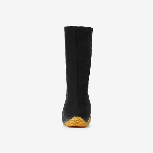 サイドファスナー仕様なので着脱が簡単なロングブーツ 黒一色の外サイドに、安全を象徴する「緑十字」マークを配したハイカットシューズは、ハードな現場で活躍している本格派。サイドファスナー仕様、緑十字マークはクッション材入りでくるぶしをガードします。