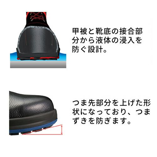 静電気機能+優れた防水性。ハイスペック装備の本格派 静電機能とともに防水5cmという優れた防水性を併せ持ち、耐油性ゴム底を採用。静電気を嫌うがぞ輪スタンドなどで活躍。鋼製先芯に加え、エアクッションも装着のハイスペックなセーフティシューズです。