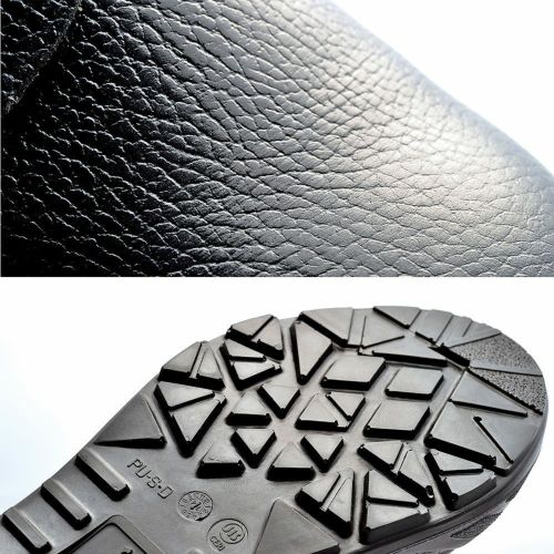 サイドファスナーで着脱簡単。滑りにくい耐滑ソールを採用 耐油性ゴム底にキューブデザインの「耐滑ソール」を採用したセーフティシューズ。雨や油にも滑りにくく、ガソリンスタンドや自動車整備、鉄工場などの職場環境にも対応。着脱が楽なサイドファスナー仕様です。