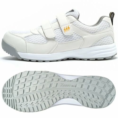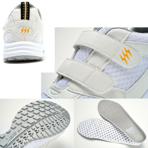 メッシュ仕様でより快適に。高機能静電シューズ アッパーに通気性のいいメッシュを使用した静電気帯電防止セーフティシューズ。靴底の導電配合ラバーから人体や衣服に帯電した静電気を床面へと逃します。フィット感のあるカップインソールの履き心地も抜群。