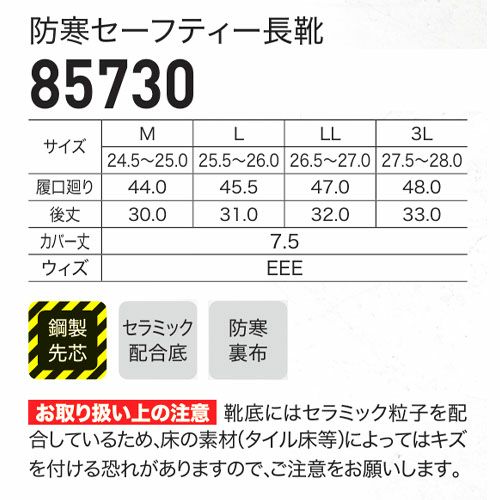安全長靴 ロング ジーベック XEBEC 防寒セーフティー長靴 鋼製先芯 85730 レインブーツ 防水 保温 グリップ 軽量 雪作業 積雪 除雪 作業靴 鋼製 先芯 耐滑 作業靴 冬 軽作業 キャンプ アウトドア すべりにくい