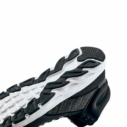 世界最高峰のグリップ力!!高所作業用ワークスニーカー ハイパーV屋根プロ#1100 しゃがんだ際にカカトが靴から脱げないように甲部を抑えるストラップベルトや、足裏で地面の感覚が把握しやすいようにあえて薄目に設計されたソール。つま先のつかみ運動を助け重心を安定させる滑り止め材など、高所作業時の着用者の安全をサポートする機能を搭載しています