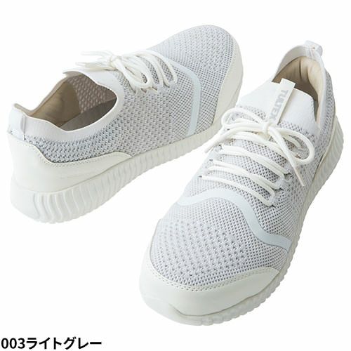 超軽量、撥水 ニットアッパー、高反発 ミッドソールスーパークッション、耐滑、4E ・超軽量で履き心地軽やか・高反発ミッドソールのスーパークッションで立ち仕事などで足の疲れを軽減・ニットアッパーの柔らかなフィット感と撥水加工で急な雨天時の作業にも安心・耐滑ソールのグリップ力で滑りにくい・4E先芯でつま先ゆったり
