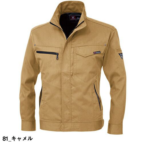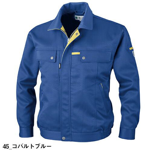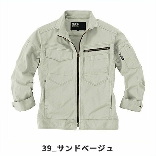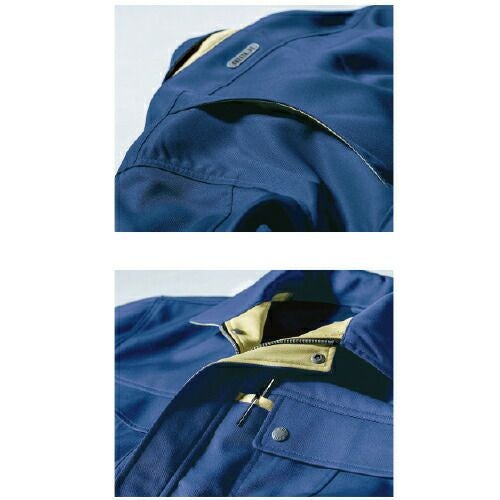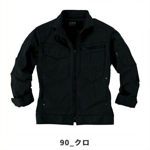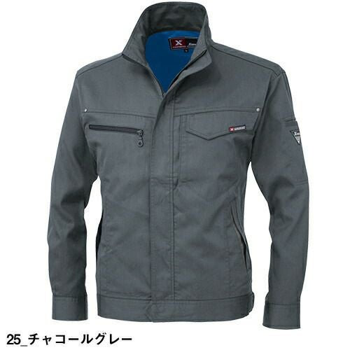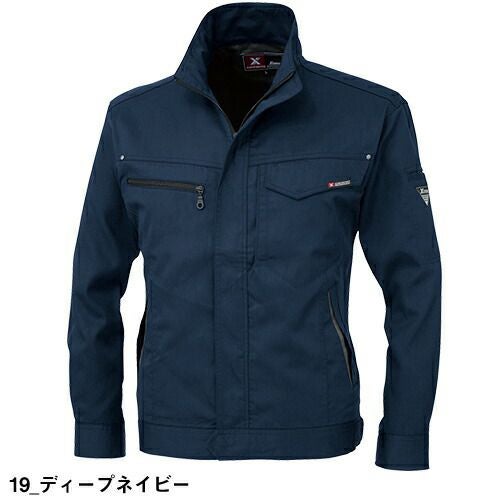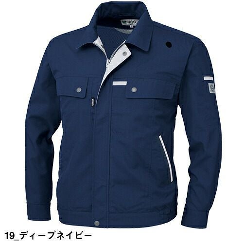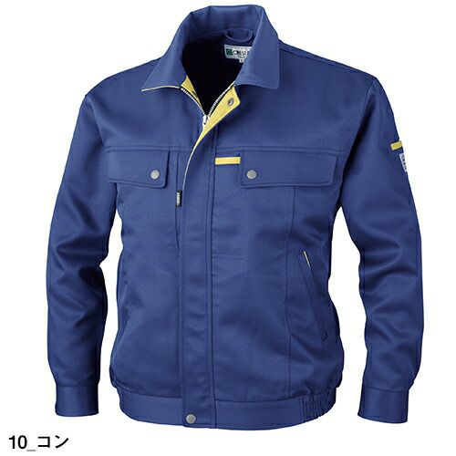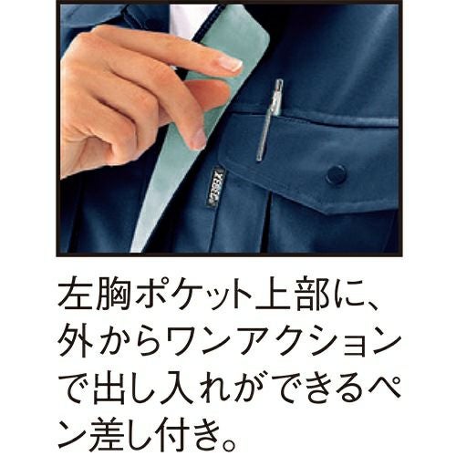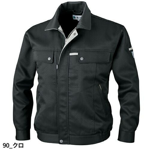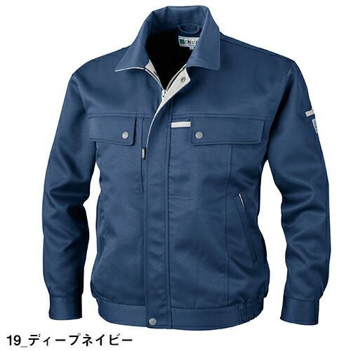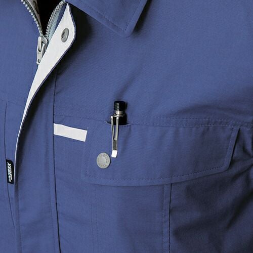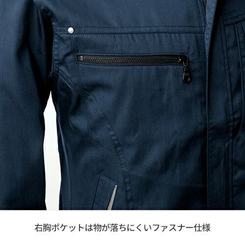 オリジナル素材に元気デザインT/Cワーク服 吸汗性・速乾性に優れたオリジナル二層構造素材を使用し、胸ファスナーのシャープなデザインにまとめ、快適性にクールデザインを融合させた力強く、かつスタイリッシュなワークスタイルです。