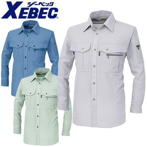 ジーベック 1343 プリーツロンミニ ドライ 長袖シャツ【作業服 長袖シャツ】春夏用 青 緑 作業服 作業着 定番 帯電防止素材 清涼素材 形態安定加工 速乾性抜群
