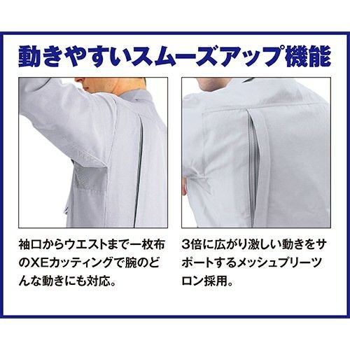 涼感ワークウェア! ガーゼのような風合いの生地「スーパークールグログラン」に「エアストリームシステム」をプラスした清涼作業服。吸汗性・速乾性・通気性とも最高レベルの爽やかな着心地で熱中症対策にも最適の清涼感あふれる作業服です。