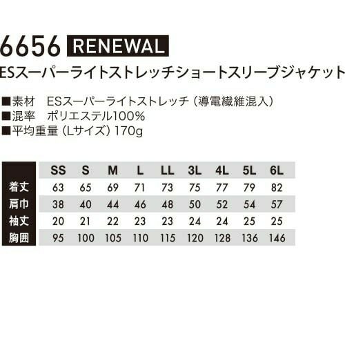 TS Design 藤和 846656 スーパーライトストレッチショートスリーブジャケット 作業着 作業服 ストレッチ ジャンパー 半袖 通年 ジャケット・ヤッケ おしゃれ かっこいい 人気 ワーク企業 法人 作業 工場 外作業