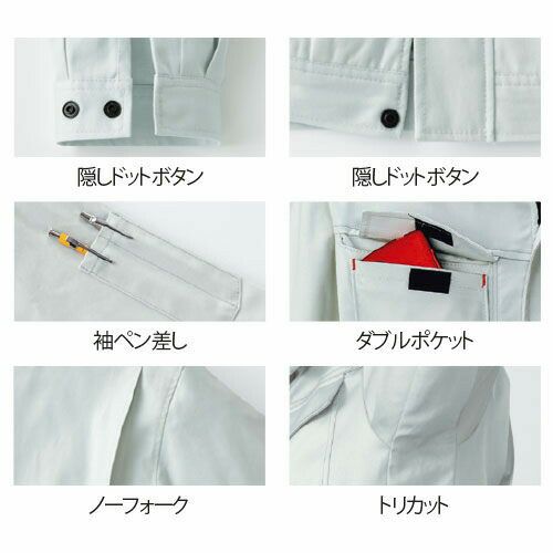 他の画像を見る 作業服 Asahicho 旭蝶繊維 ブルゾン(ノーフォーク) 850 作業着 通年 秋冬 ストレッチ 傷付け防止 850シリーズ 動きやすい おしゃれ かっこいい 人気 ユニセックス メンズ レディース 男女兼用 上着 ジャケット 企業 法人 work 特別価格 ¥ 5,489 税込 〜 特別価格 ¥ 税込 スリムスタイルにストレッチ性をプラス!再帰性反射材で着用者をサポートするスタイリッシュワークウェア!!3S~の幅広いサイズ展開で制服にも採用しやすいです! 上下色違いでコーディネイト可能スリムシルエットでスタイリッシュな印象に■傷つけ防止設計ファスナーとボタンなどの露出を抑えて商品への傷付けを防止■再帰性反射パイピングブルゾンの左袖・両脇切替部と、パンツの両腿・ヒザ部後身頃に再帰性反射パイピングを使用■Scotchlite コンフォートトリムブルゾンの右袖切替に、視認性に優れた再帰性反射材(Scotchlite コンフォートトリム)を使用 詳細を見る お気に入りに登録する