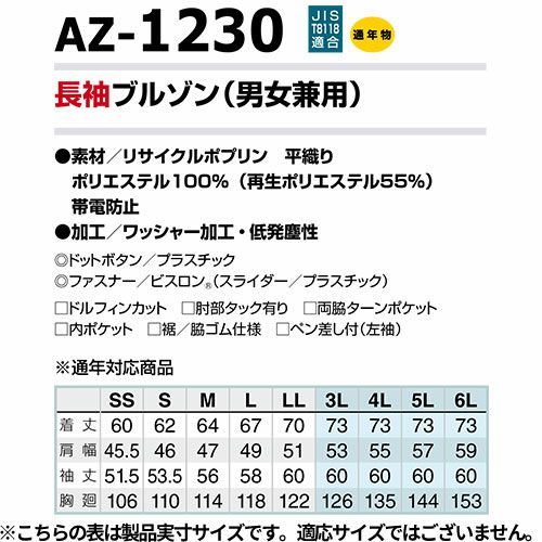 他の画像を見る 作業着 ブルゾン ジャケット ジャンパー AZ-1230 アイトス AITOZ 作業服 制電 帯電防止 動きやすい 長袖 上着 シンプル おしゃれ かっこいい 作業 工場 外作業 大きいサイズ 3L 4L 5L 6L 秋冬 メンズ レディース 男女兼用 防寒着 防寒ジャケット 特別価格 ¥ 5,450 税込 〜 特別価格 ¥ 税込 衣服からの塵埃を最低レベルに抑える低発塵仕様。精密機械や食品加工、きめ細かい作業の現場に最適。 詳細を見る お気に入りに登録する