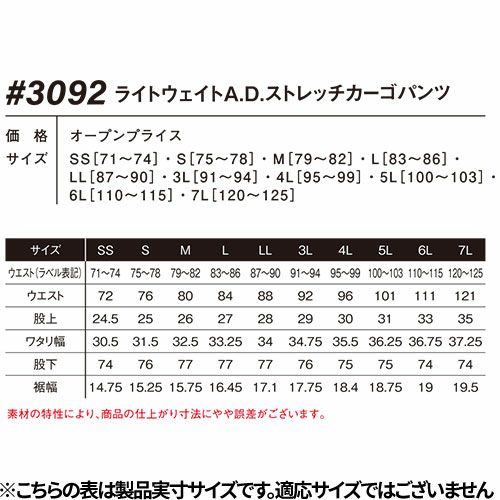 他の画像を見る 作業服 カーゴパンツ アイズフロンティア I'Z FRONTIER ライトウェイトA.D.ストレッチカーゴパンツ #3092 作業着 通年 秋冬 タウンユース アウトドア スポーティ カッコいい おしゃれ 特別価格 ¥ 4,389 税込 高い独創性が生み出す次世代ユニフォームの進化のかたち。フューチャーデザインとスポーティーファンクションの融合が新たなワークマインドを刺激する。 ●ポリエステル100%ながら独特のギラつきを抑えマットな表面感を実現し、高級感のあるナイロンライクな風合いを発揮。従来のポリエステルにない独創的な素材感を実現しました。●そのルックスはワークのみならずスポーツやアウトドア等、様々なシーンに対応可能です。●表側はシンプルでシャープなルックスを表現しつつ、裏側は膨らみを持たせた糸を使用する事によりコットンライクで柔らかな着心地を実現する二重織構造素材を採用。●目付145g/m2の軽量素材を使用。現代のワークシーンに求められる軽量感を実現し着用時の負担を軽減いたします。●しなやかなクリンプ形成による特殊構造加工糸によりポリウレタンにない耐久性を発揮。●伸長率タテ約18%・ヨコ約19%、伸長回復率(1時間後)タテ約86%・ヨコ約82%の適度な全方向ストレッチ性能を有し、ストレスのない快適な動き易さと、安定感のあるスタイリッシュなスタイルキープを実現します。●軽量感のある素材ながらも一般基準をクリアする引裂き強さ(タテ約15N・ヨコ約24N)を実現。抗ピリング性能等その他各項目も高い数値を測定した高堅牢性モデル。●ハイレベルな導電糸を組み込み高い帯電防止性能を発揮。素材自体はJIS T8118にも適合します。●シーンを選ばない先進的なシャープなデザインに、アイズフロンティアならではの厳選されたレタリングプリントをプラス。さり気ないリッチ感を演出します。●カーゴパンツは美しいシルエットを表現も、ウエスト帯は平ゴムシャーリング仕様を採用し更なる履き心地の良さを実現。より様々な体形にフィットします。●高級感のある止水ファスナーやドット釦等に国産YKK社製を使用。細部にまで拘りを追求しています。 詳細を見る お気に入りに登録する