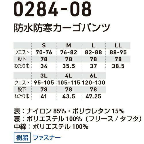 他の画像を見る 作業服 カーゴパンツ 桑和 SOWA ストレッチ防水防寒カーゴパンツ 0284-08 作業着 通年 秋冬作業着 作業服 カーゴパンツ おしゃれ かっこいい 人気 ズボン 作業ズボン 作業パンツ 作業 工事 土木 塗装 DIY diy 特別価格 ¥ 6,480 税込 〜 特別価格 ¥ 税込 高い耐水性・透湿性・防寒性を実現しながらも動きやすさと着心地も突き詰めたハイスペックパンツ ・防寒なのに動きやすい縦横ストレッチ生地を使用・裏地の部分ニット仕様でストレッチ性アップ・冷気の浸入を防ぐ防風性素材・多少の雨、水をはじきやすい・雨、水の浸入を防ぐ防水仕様・反射パイピング使いによる高視認性・衣服内が蒸れにくい透湿性素材 詳細を見る お気に入りに登録する