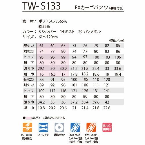 他の画像を見る 作業服 カーゴパンツ タカヤ商事 TAKAYA EXカーゴパンツ TW-S133 作業着 春夏 カーゴパンツ ボトム ズボン 機動性 蛇腹 特別価格 ¥ 6,391 税込 〜 特別価格 ¥ 税込 シルエットと動きやすさに徹底的にこだわった高機能パンツ EXカーゴパンツの春夏モデル 人気の TW-A113 の春夏素材バージョン蛇腹(エクスパンション)パーツ+ストレッチ素材により、驚異的に動作性がアップしたストレスフリーウェア。腰まわりと膝上に配置されたエクスパンションで、屈伸で制限される可動域を開放します。作業者の作業効率の増とストレスの減を同時に叶えるという、これまでの作業服の概念を変えたタカヤワークウェア史上最大のパフォーマンスモデル。フロントのスラッシュポケット、バックポケット、サイドにはファスナー口ポケットとドットボタン付きのフラップポケット等、収納力も抜群。ツールの種類によって使い分けができます。レディースサイズにも幅広く対応するダイバーシティモデル。 詳細を見る お気に入りに登録する