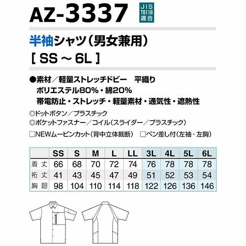 他の画像を見る 作業服 半袖シャツ AITOZ アイトス ムービンカット半袖シャツ(男女兼用) AZ-3337 作業着 春夏 帯電防止 動きやすい 遮熱 反射材使用 吸汗速乾 通気性 軽量 ストレッチ シャツ 半袖 春夏 メンズ レディース 特別価格 ¥ 4,040 税込 〜 特別価格 ¥ 税込 軽量ストレッチ×高機動設計 ムービンカット×バンジーテックで肩から腕にかけての運動性能が大幅にアップ!+通気性 +遮熱 +吸汗速乾、軽く通気性に富んだストレッチ素材を採用 詳細を見る お気に入りに登録する