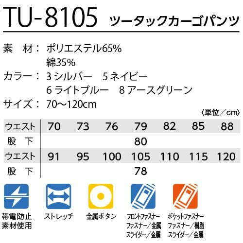 他の画像を見る 作業服 カーゴパンツ タカヤ商事 TAKAYA ツータックカーゴパンツ TU-8105 作業着 春夏作業着 作業服 カーゴパンツ 春夏 特別価格 ¥ 4,906 税込 〜 特別価格 ¥ 税込 1.高品質の日本製素材2.夏場に快適なストレッチトロピカル組織3.ロングセラーのベーシックモデル 詳細を見る お気に入りに登録する