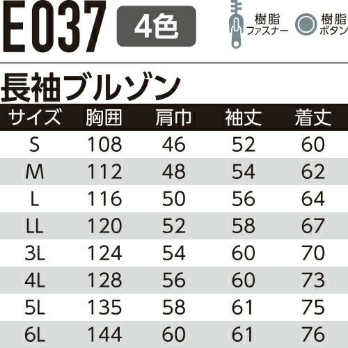 他の画像を見る 作業服 ブルゾン Asahicho 旭蝶繊維 長袖ブルゾン E037 作業着 春夏作業着 作業服 ブルゾン 春夏 特別価格 ¥ 4,939 税込 〜 特別価格 ¥ 税込 環境に優しくJIS適合帯電防止素材 ポケットレスウェア(E0371シリーズ)とコーディネートが可能です。 詳細を見る お気に入りに登録する