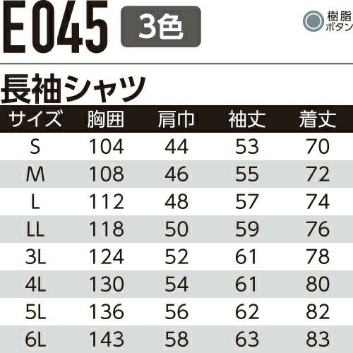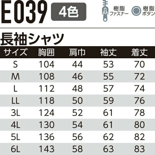 他の画像を見る 作業服 長袖シャツ Asahicho 旭蝶繊維 長袖シャツ E039 作業着 春夏作業着 作業服 長袖シャツ 春夏 特別価格 ¥ 3,960 税込 〜 特別価格 ¥ 税込 環境に優しくJIS適合帯電防止素材 ポケットレスウェア(E0371シリーズ)とコーディネートが可能です。 詳細を見る お気に入りに登録する