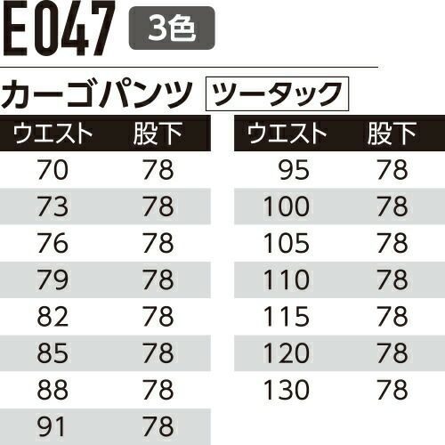 他の画像を見る 作業服 カーゴパンツ Asahicho 旭蝶繊維 カーゴパンツ(ツータック) E047 作業着 春夏作業着 作業服 カーゴパンツ 春夏 特別価格 ¥ 5,236 税込 〜 特別価格 ¥ 税込 優れた帯電防止効果と清涼な着心地が魅力の実力派 男女ペアで様々なワークシーンに対応!! 詳細を見る お気に入りに登録する