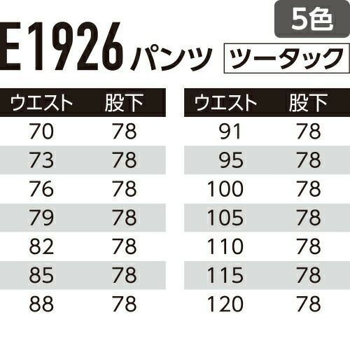 他の画像を見る 作業服 パンツ スラックス Asahicho 旭蝶繊維 パンツ(ツータック) E046 作業着 春夏作業着 作業服 スラックス 春夏 特別価格 ¥ 4,631 税込 〜 特別価格 ¥ 税込 優れた帯電防止効果と清涼な着心地が魅力の実力派 男女ペアで様々なワークシーンに対応!! 詳細を見る お気に入りに登録する