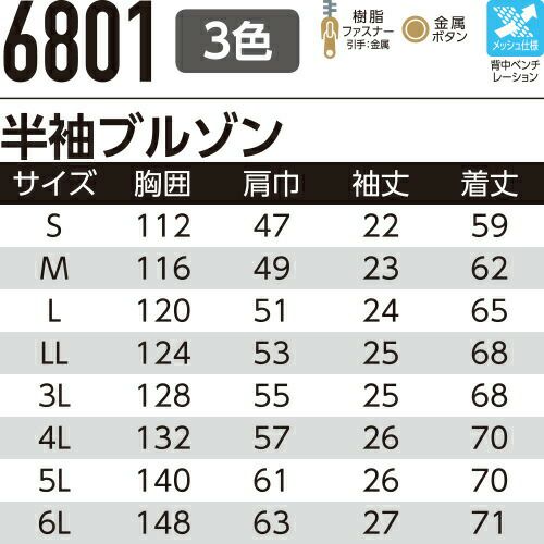 他の画像を見る 作業服 ブルゾン Asahicho 旭蝶繊維 半袖ブルゾン 6801 作業着 春夏作業着 作業服 ブルゾン 春夏 特別価格 ¥ 5,027 税込 〜 特別価格 ¥ 税込 シルクタッチでさらっとドライ!ムレにくく暑さに強い、クールに乗り切る快適ウェア 背中ベンチレーション付きでこもった湿気や熱を逃し、蒸れずに快適!! 詳細を見る お気に入りに登録する