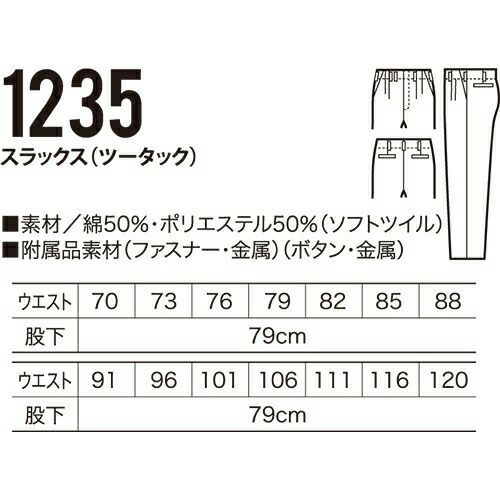他の画像を見る クロダルマ 1235 スラックス(ツータック) VP 作業着 ボトムス ワークウエア ワークウェア 作業服(春夏) パンツ・スラックス 腿ポケット無ズボン 作業服 特別価格 ¥ 4,939 税込 〜 特別価格 ¥ 税込 詳細を見る お気に入りに登録する