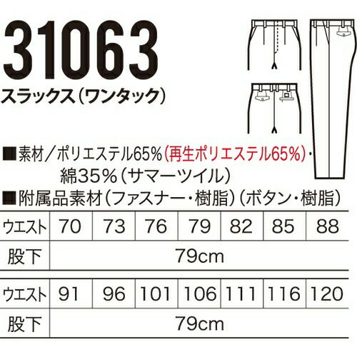他の画像を見る バートル 作業服 春夏 パンツ 6027 ツータックパンツ BURTLE 春夏作業着 スラックス 腿ポケット無 作業着 特別価格 ¥ 3,570 税込 〜 特別価格 ¥ 税込 着心地のよさと信頼の制電性を実現! 高品質な日本製リサイクル素材を使用エコマーク・グリーン購入法対応アイテム優れた耐久性とソフトな着用感製品制電JIS T8118適合品 詳細を見る お気に入りに登録する