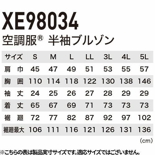 EFウェア 半袖 ジーベック XEBEC 空調服(R)半袖ブルゾン(ファン無し)2025年モデル XE98034 作業着 作業服 春夏 猛暑 酷暑 熱中症対策 涼しい 電動ファン 扇風機 ハイバックファン 上部ファン 背中上部 車 フォークリフト 運転