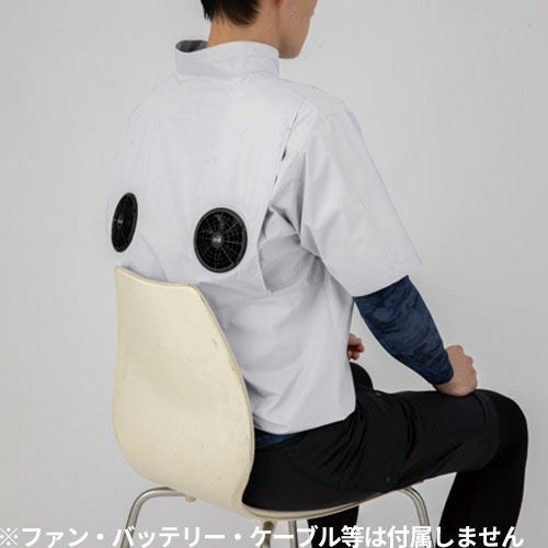 上部ファンタイプ空調服 背中上部にファンを配置した空調服腰回りの道具が邪魔にならないファン位置で作業の効率を上げます。背中上部を中心に風が回るので背中、首元への冷却効果が抜群です。●腰回りの干渉を軽減した上部ファン仕様●遮熱コーティング●紫外線カット●物の落ちにくい両脇ファスナーポケット
